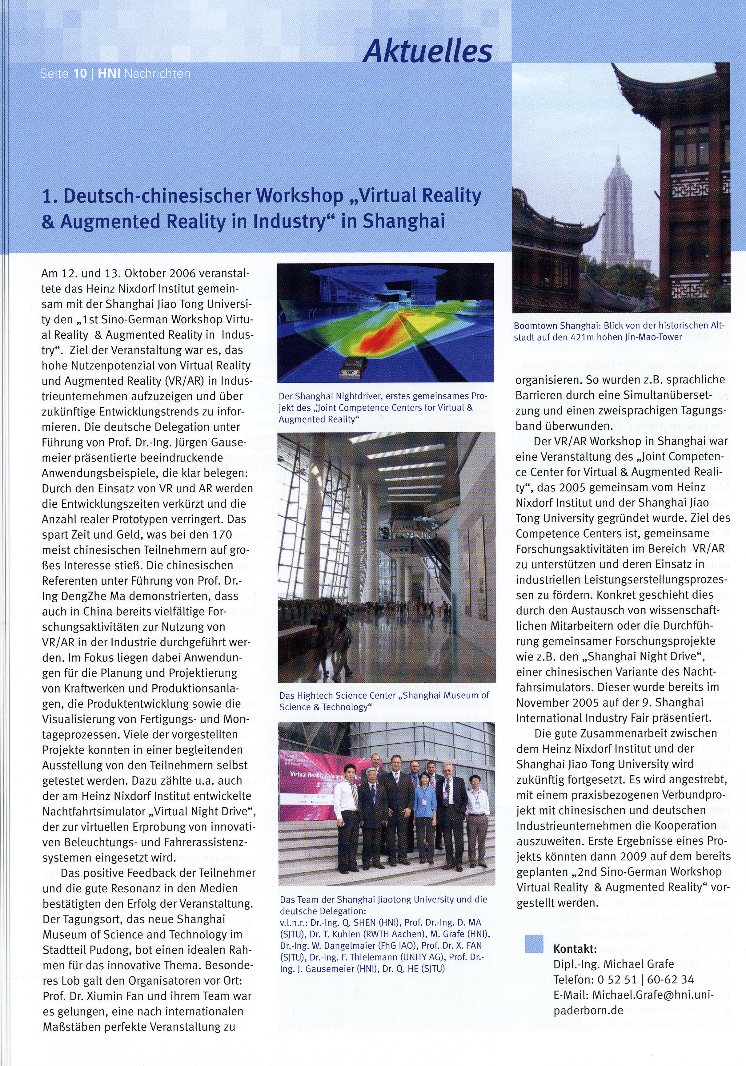 Thema1. Deutsch-chinesicher Workshop "Virtual Reality & Augmented Reality in Industry" in Shanghai |
